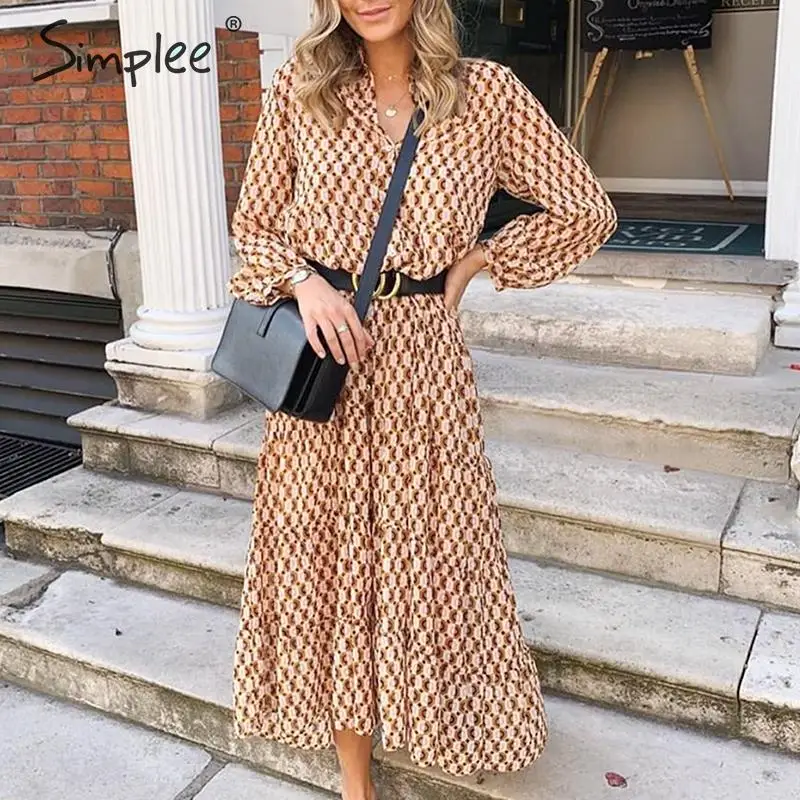 Simplee Bohemian long party dress Floral print geometric women vintage dress Elegant office lady au
