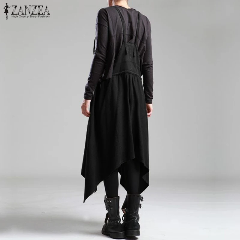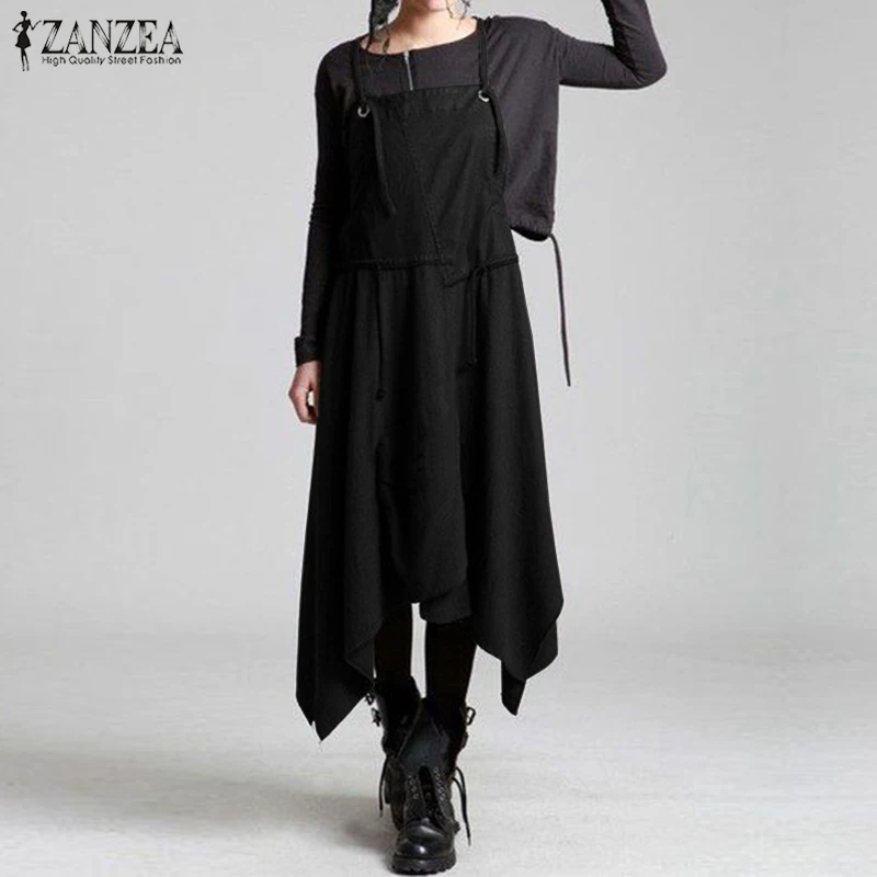 REVIEW TOP SELLER Summer Overalls Dress ZANZEA Women Vintage Strappy Patchwork Denim Dress Asymmetrical Hem Sundress